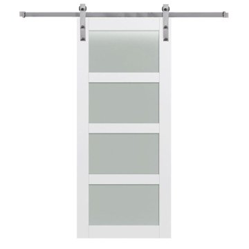 MMI DOOR Primed 4-Lite 36" X 84" Kit With Stainless Steel Barn Door Hardware | HD Supply