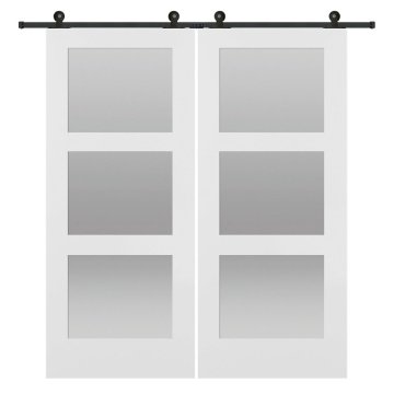 MMI DOOR Primed 3-Lite 84" X 84" Kit With Black Barn Door Hardware | HD Supply
