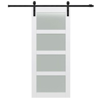 MMI DOOR Primed 4-Lite 42" X 84" Kit With Black Barn Door Hardware | HD Supply