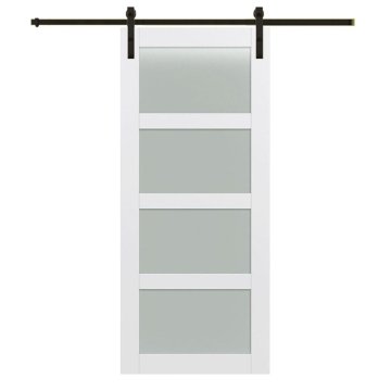 MMI DOOR Primed 4-Lite 42" X 84" Kit With Oil Rubbed Bronze Barn Door Hardware | HD Supply