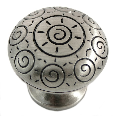 1 1/4" Sun Swirl Round Knob, Satin Nickel Antique