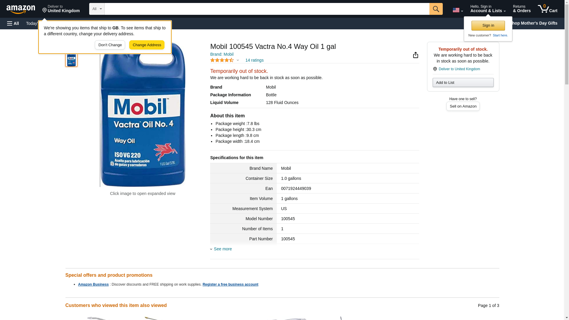 Mobil 100545 Vactra No.4 Way Oil 1 gal