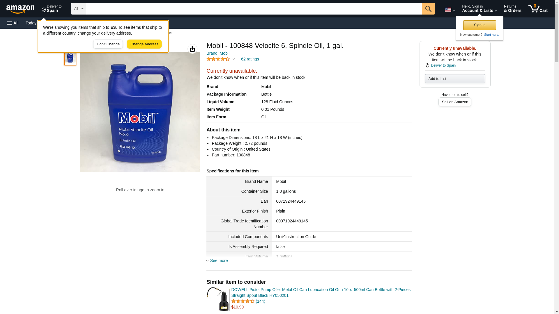 Mobil - 100848 Velocite 6, Spindle Oil, 1 gal.
