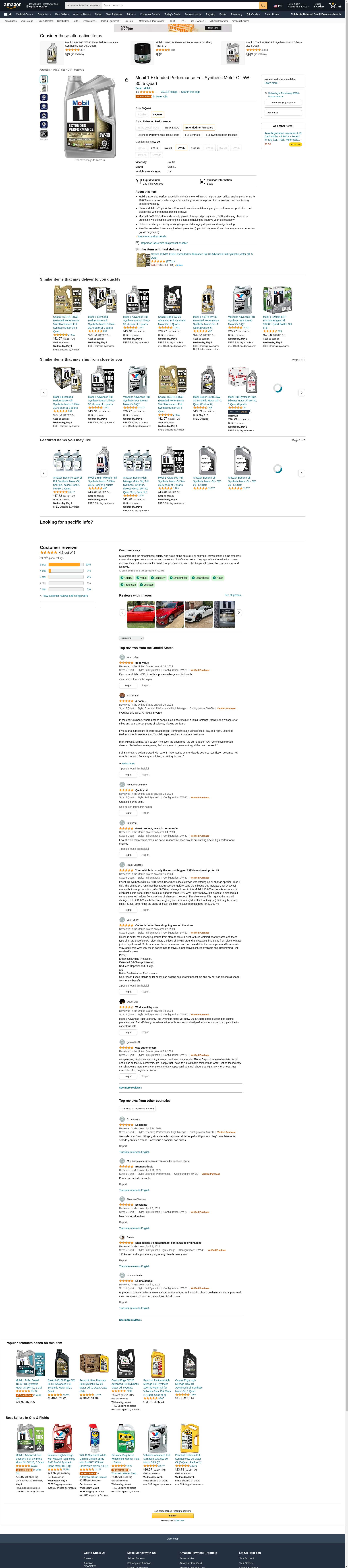 Mobil 1 Extended Performance Full Synthetic Motor Oil 5W-30, 5 Quart