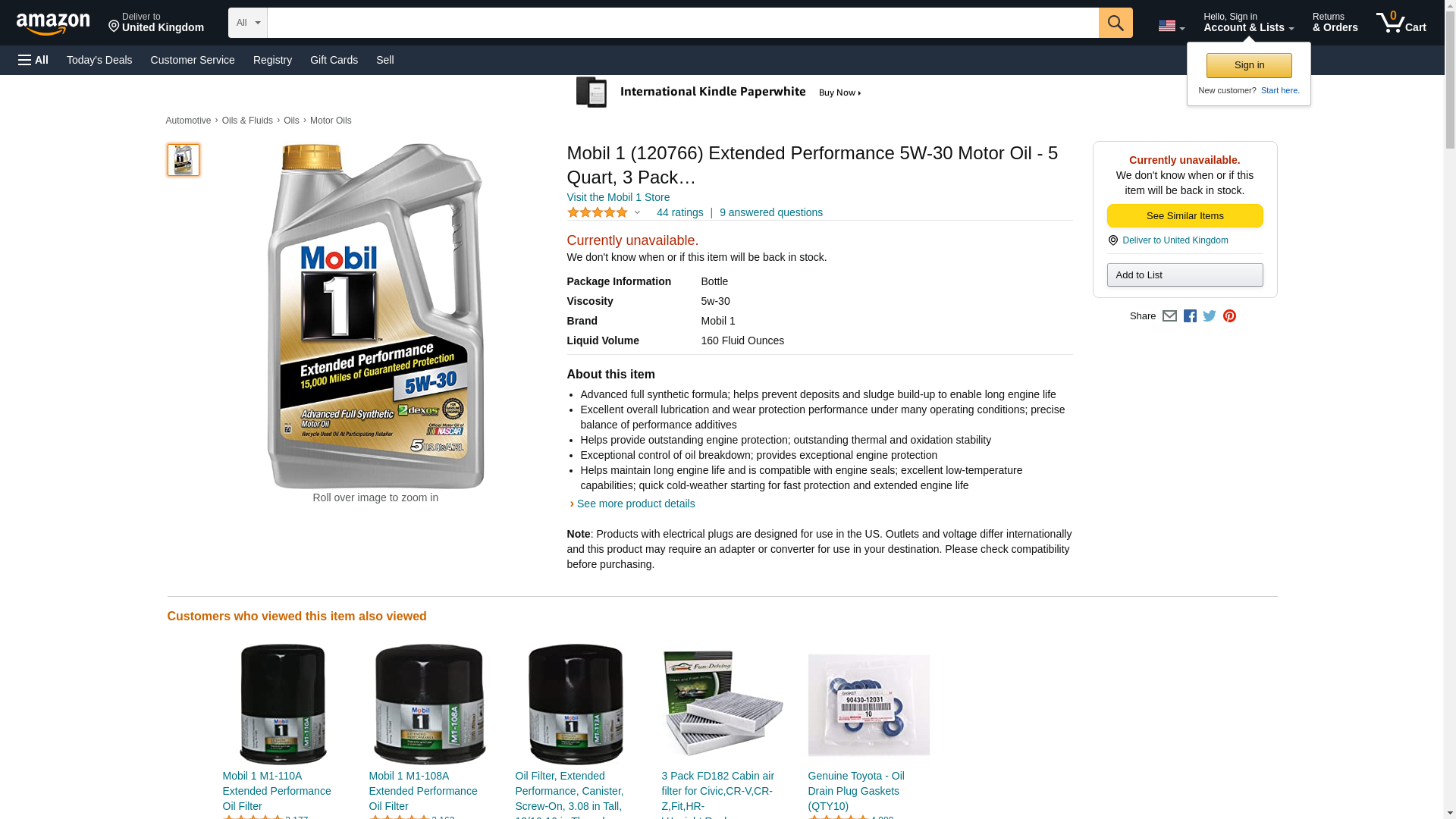 Mobil 1 (120766) Extended Performance 5W-30 Motor Oil - 5 Quart