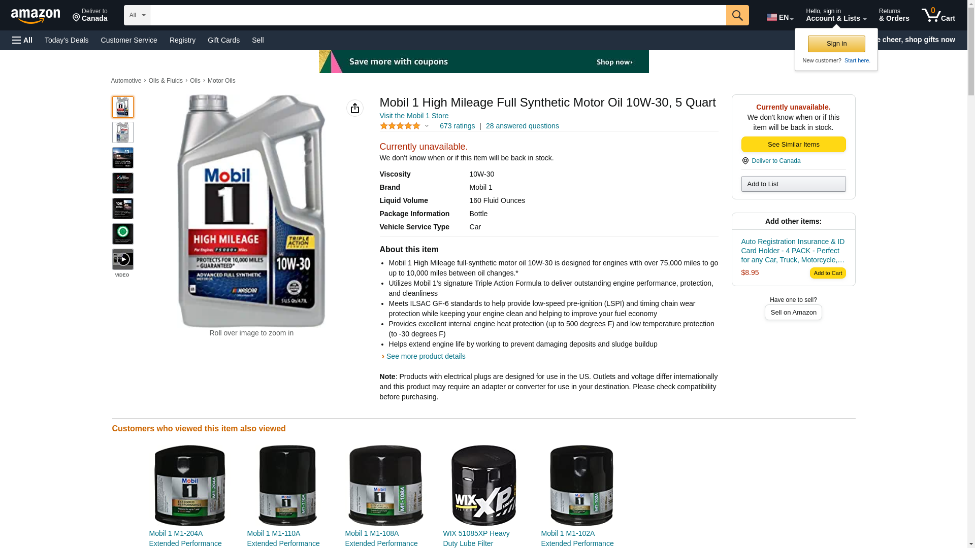 Mobil 1 120770 M1 Hi Mileage 10w30 5 Qt