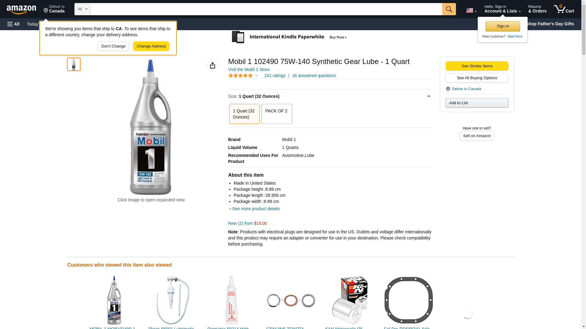Mobil 1 102490 75W-140 Synthetic Gear Lube - 1 Quart (Pack of 2)