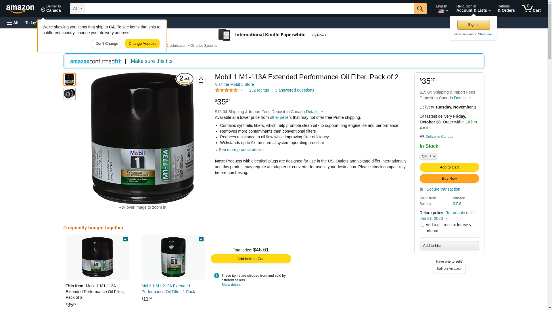 Mobil 1 M1-113A Extended Performance Oil Filter, Pack of 2