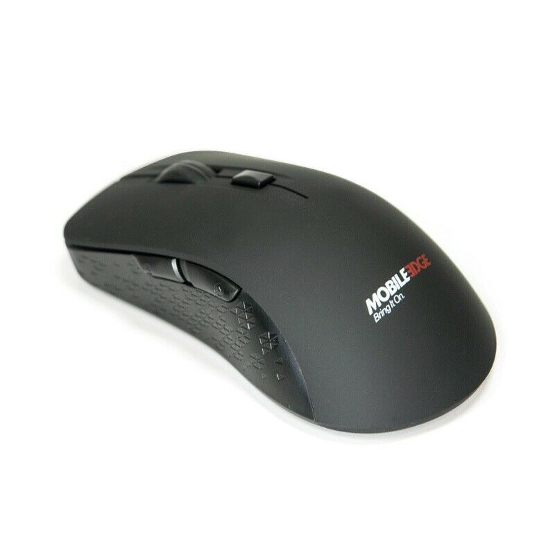The Mobile Edge 6-Button Wireless Optical Mouse is a fantastic ergonomic solution for any PC user at work, at home, or on the go. With a convenient button to switch between 1600 DPI, 1200 DPI or 800 DPI, it can accommodate any size monitor with precision and precision at a comfortable speed. Forward and back buttons make web browsing easy, and there's also a Double Click button for productivity or gaming use. The USB receiver stores conveniently inside the battery compartment when not in use. . Manufacturer: Mobile Edge. Manufacturer part number: MEAM06. Brand Name: Mobile Edge. Product model: MEAM06. Product name: 6-button rechargeable wireless mouse. Product type: Mouse. [Pointing device] Pointing device connectivity technology: Wireless. Pointing device Wireless technology: Radio frequency. Motion detection: optical. Motion resolution: 1600 dpi. Total number of buttons: 6. Scroll type: Scroll wheel. [Interfaces/Ports] Pointing device host interface: USB. [Physical characteristics] Color: black. Height: 1.4". Width: 2.5". Depth: 4.8". Weight (approximate): 2.90 oz. [Miscellaneous] Package Contents: 6-Button Rechargeable Wireless USB Receiver. Compatible Device: Desktop PC. Country of Origin: China. [Warranty] Limited Warranty: 1 Year.