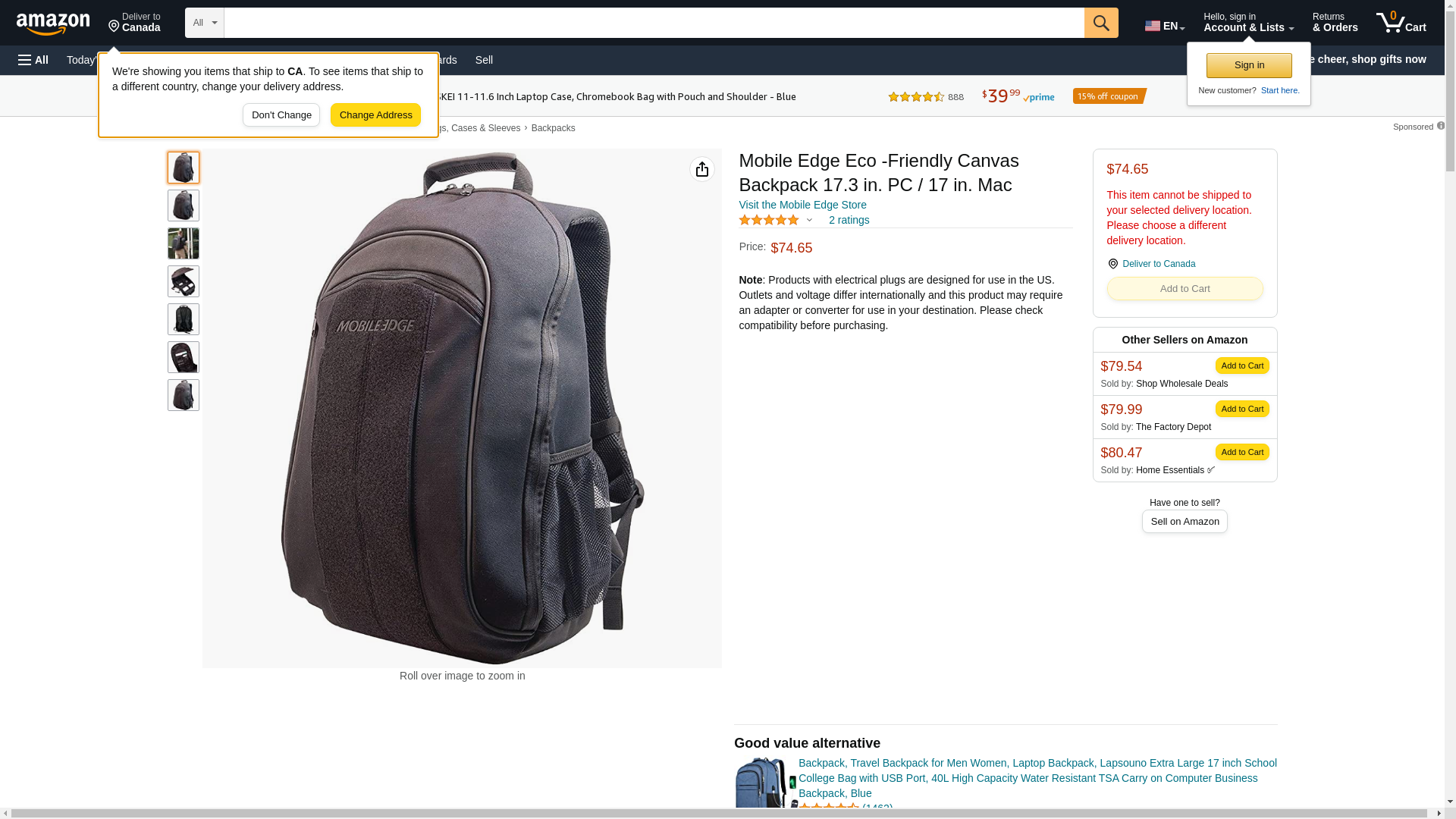 | Feature | MOBILE EDGE MECBP1 17.3-Inch Eco-Friendly Canvas Backpack (Black) |