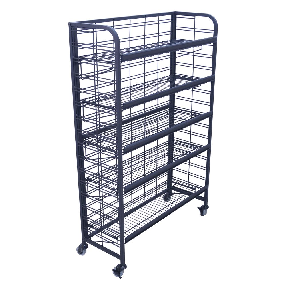 As an Amazon Associate, we earn from qualifying purchases. Mobile Merchandisers Black Metal 5-Shelf Display Rack - 36 Mobile Merchandisers . EC3652A/BLK Gallery Attributes Brand name, Manufacturer name, Manufacturer, Attribute01Mobile Merchandisers Attribute00, SKU89490 Attribute02, MPNEC3652A/BLK Attribute03, moq, multiple, tierMinQty11 Attribute04Steel Attribute05Powder Coated Attribute06, colorBlack Attribute07Rectangular Attribute0836" in Attribute0913" in Attribute1052" in Attribute11(2) Locking, (2) Non-Locking Attribute12Assembly Required AttributeKey00Stock No. AttributeKey01Brand AttributeKey02VPN AttributeKey03Case Pack AttributeKey04Material AttributeKey05Finish AttributeKey06Color AttributeKey07Shape AttributeKey08, length_AttribLength AttributeKey09, width_AttribWidth AttributeKey10, height_AttribHeight AttributeKey11Caster Detail AttributeKey12Shipping Information DimensionUnitinch Extra Product NameMobile Merchandisers Black Metal 5-Shelf Display Rack - 36 height52.0 length36.0 qtyInStock1000 snippetHubert carries quality shelving, racks & floor fixtures. Buy the Mobile Merchandisers Black Metal 5-Shelf Display Rack at best price! Shop for mobile racks now! tierPrice1931.17 width13.0 Distributor offers SellerSKUMOQIn stockMultiplePrices Hubert894901100011 @ $931.17