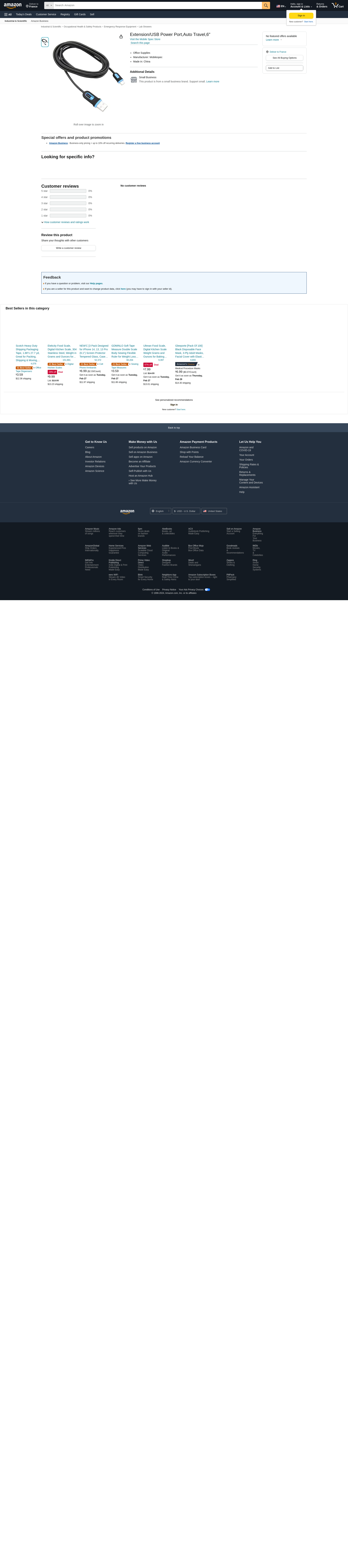 Extension/USB Power Port,Auto Travel,6"
