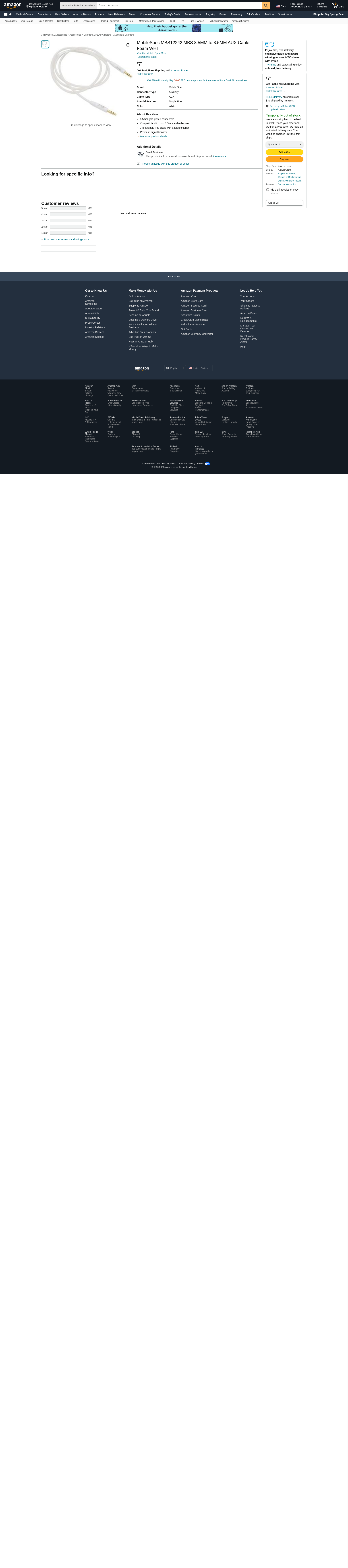 MobileSpec MBS12242 MBS 3.5MM to 3.5MM AUX Cable Foam WHT
