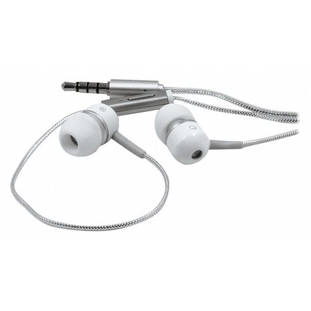 In-Ear Earbuds, w/In-Line Mic, Wht/Slv