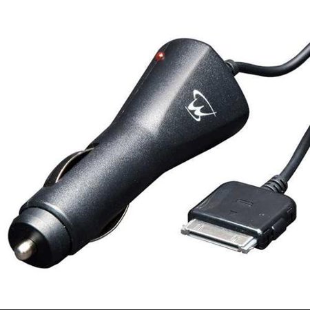 MobileSpec 12-Volt Car Charger for iPod/iPhone with 3.5-Feet Cord and LED Indicator - Black