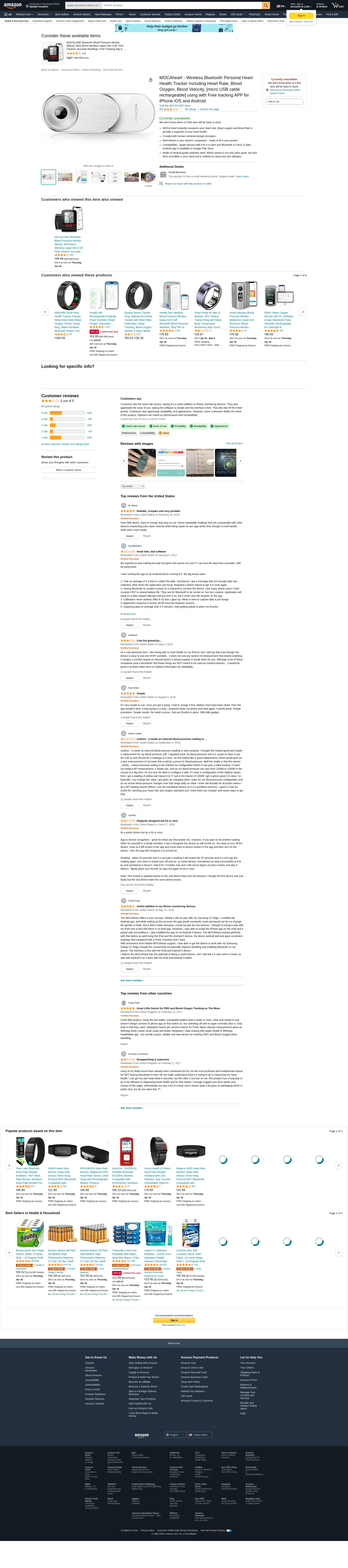 MOCAheart - Wireless Bluetooth Personal Heart Health Tracker including Heart Rate, Blood Oxygen, Blood Velocity, [micro USB cable rechargeable] using with Free tracking APP for iPhone iOS and Android