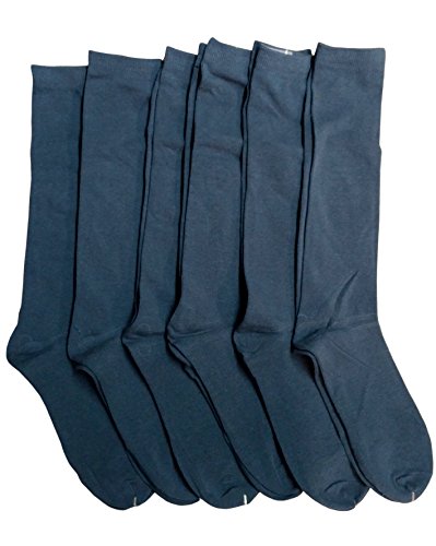 Mod & Tone 265w-9-11-denim 6 Pair Womens Cotton Flat Knit Solid Knee High Socks, Denim - Size 9 -11