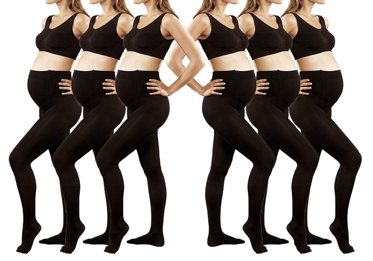 Mod & Tone 620-MTY-BLK-Q-6 Maternity Microfiber Wide Waist Band Opaque Tights, Black Q1 & Q2 - Pack of 6