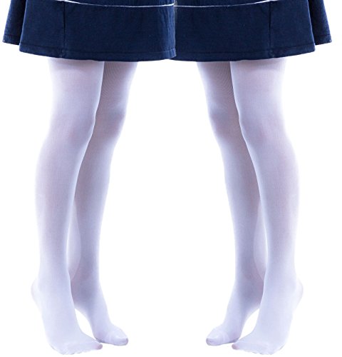 Mod & Tone 672-white-8-10 2 Pair Girls Microfiber Opaque Tights, White - Size 8-10