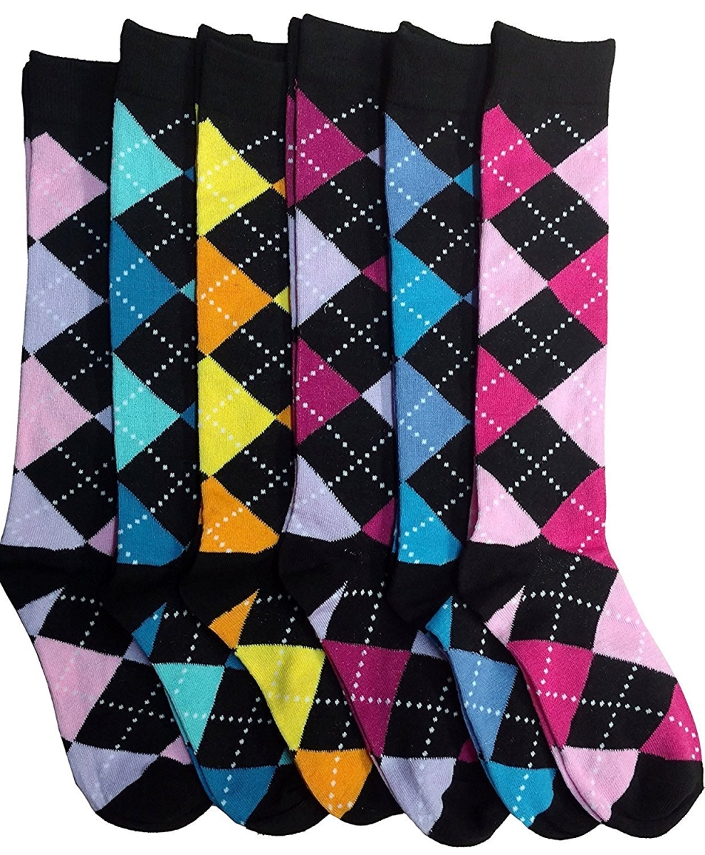 Mod & Tone 917-1425-6-911 6 Pair Woman Designer Knee High Boot Socks, Pack E - Size 9-11