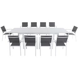 Mod Furniture HARPDN11PC-WHT Harper 11 Piece Outdoor Dining Set with 10 Sling Chairs & 40 x 118 in. Expandable Dining Ta