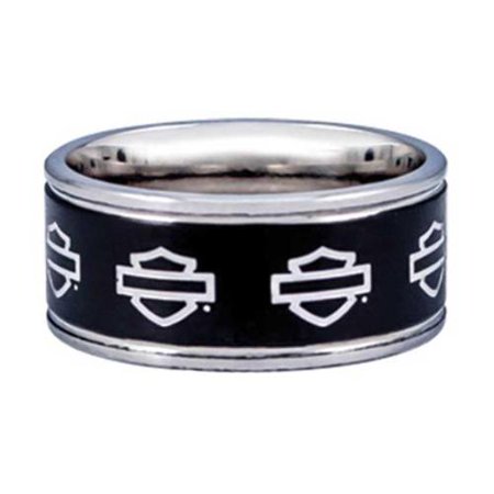 Harley-Davidson Men's Outline Bar & Shield Band Ring, HSR0025. Features famous repeated Bar & Shield logos. Made of long lasting black and silver stainless steel. Hand crafted with the highest attention to detail and quality. HSR0025 <p></p> <ul> <li>Harley-Davidson Men's Outline Bar & Shield Band Ring</li> <li>Famous outline Bar & Shield Logos repeated around band</li> <li>Made of long lasting black and silver stainless steel</li> <li>Silver & Black</li> <li>Hand-crafted with the highest attention to detail</li> </ul>