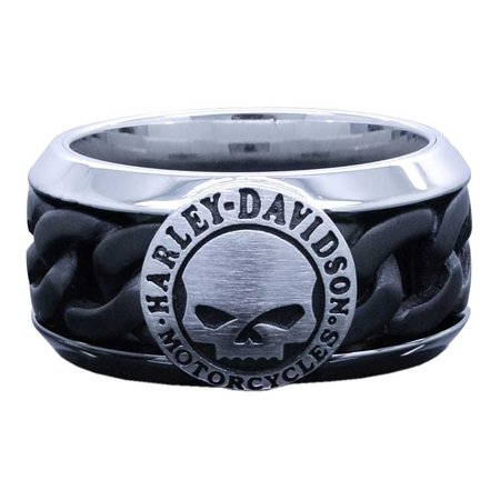 Harley-Davidson Men's Black Steel Chain Willie G Skull H-D Ring HSR0030, Harley Davidson