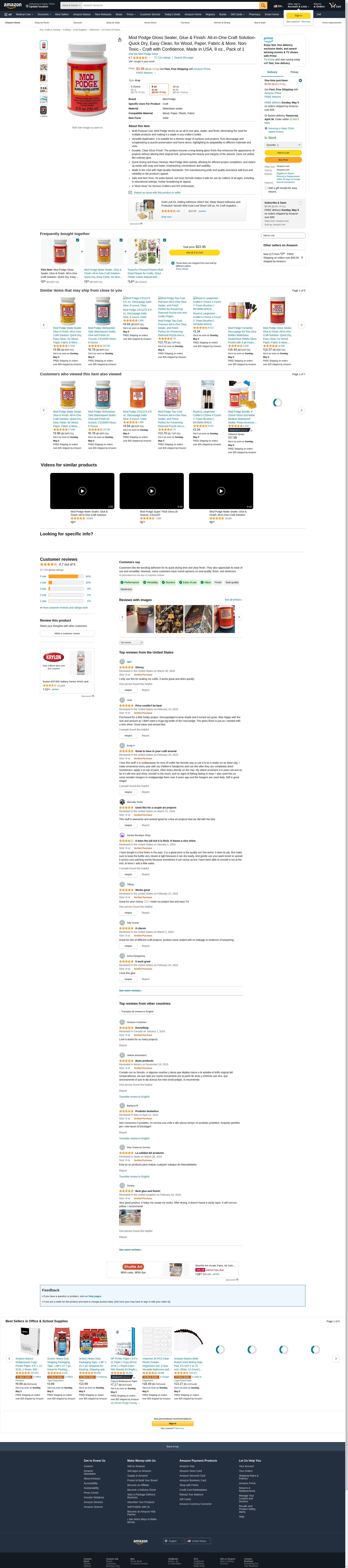 Mod Podge is an all-in-one glue, sealer and finish, trusted by crafters for their most treasured creations. Available in a variety of formulas, the Mod Podge family of decoupage mediums provide endless possibilities. Mod Podge is quick-drying for multiple coat build up and can be sanded to a smooth finish.