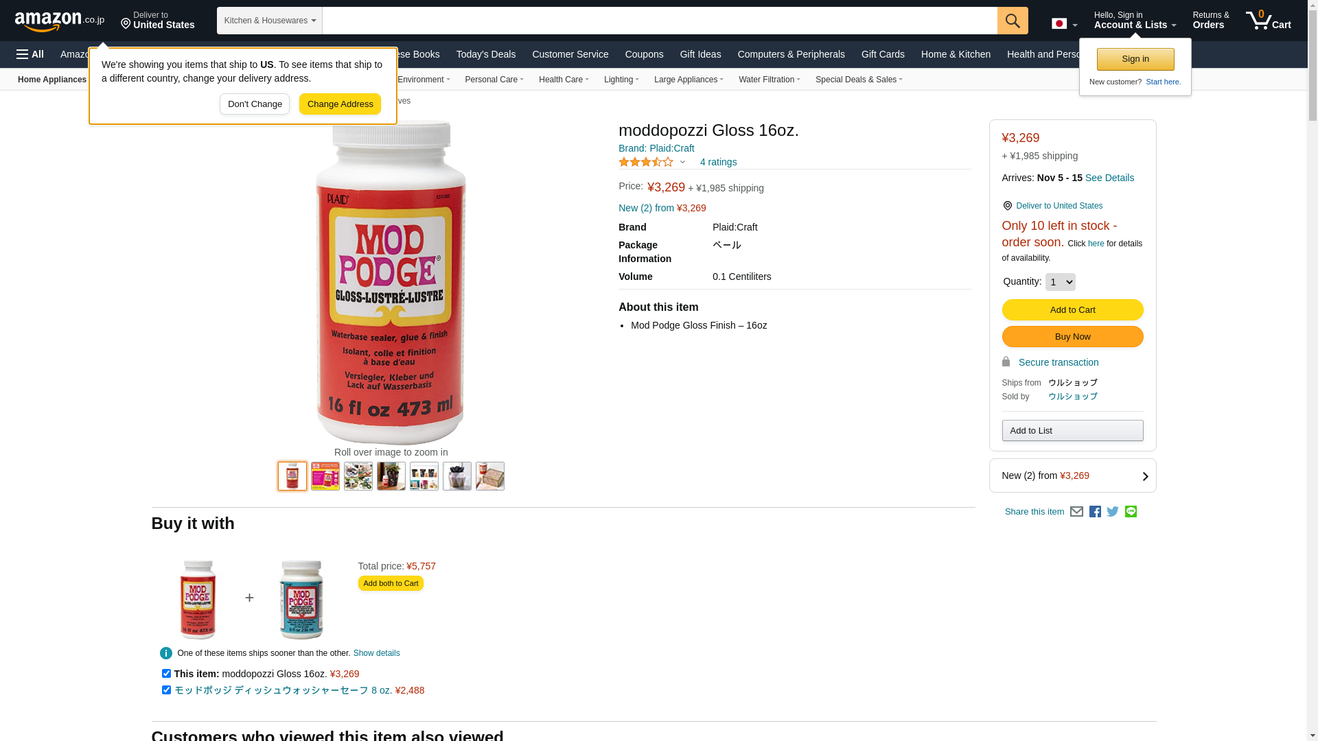 Gloss Finish Mod Podge in two 16 ounce plastic bottles. Mod Podge dries clear in approximately 15-20 minutes and can be sanded to a smooth finish. Apply with brush or sponge applicator. Close container after each use. Clean up with water while wet. Once dry, Mod Podge cannot be removed. Use as a puzzle saver, a sealer glue, a quick finish, a textured finish,or a build-up finish." Non-toxic. Uses: as a glue for paper, fabric, and other porous materials as a sealer for wood, paper, and prints as a finish for printed material, decoupage, and fabric. Also functions as a painting medium for water-based paint. The water-based sealer, glue, and finish for all surfaces! Non-toxic non-flammable Conforms to ASTM D 4236 Store at room temperature. Contents: Two 16 oz. plastic bottle of GLOSS Made in the USA.