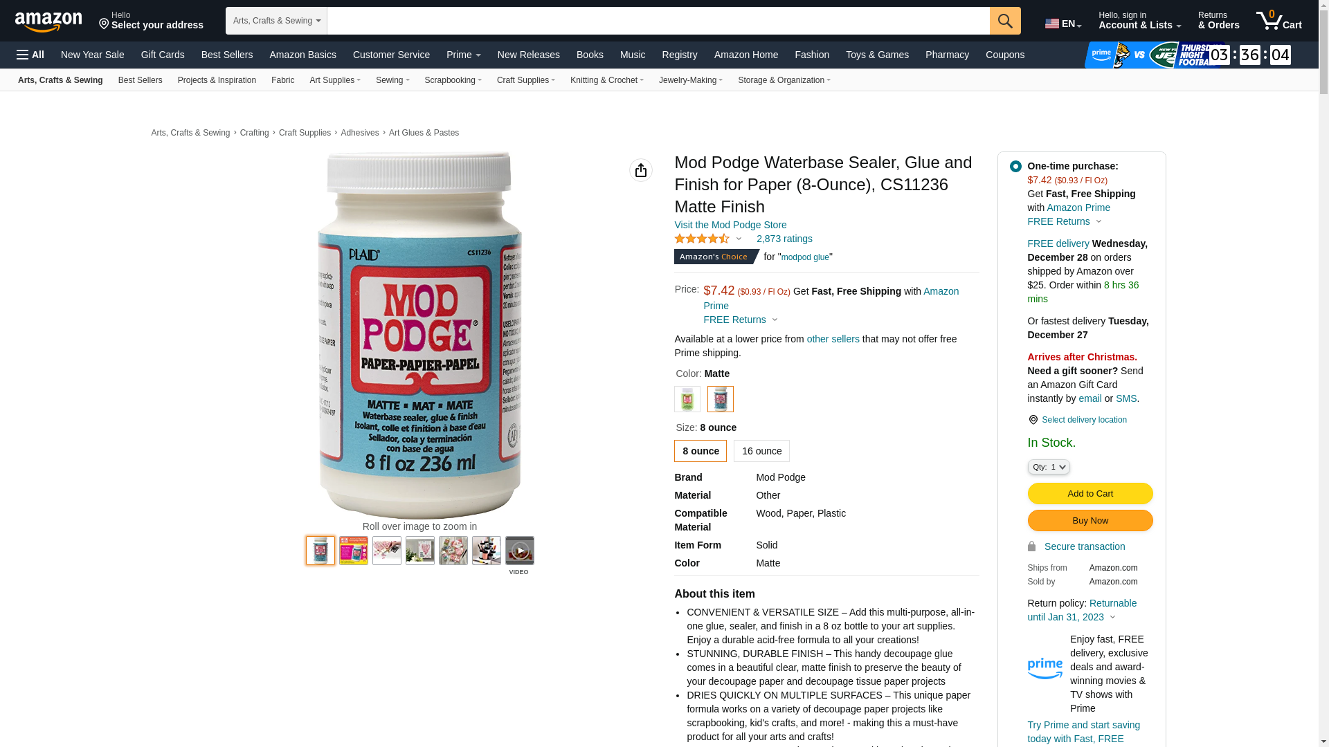 Mod Podge Waterbase Sealer, Glue and Finish for Paper (8-Ounce), CS11236 Matte Finish