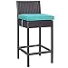 Modway Convene Wicker Rattan Outdoor Patio Bar Stool with Cushion in Espresso Turquoise