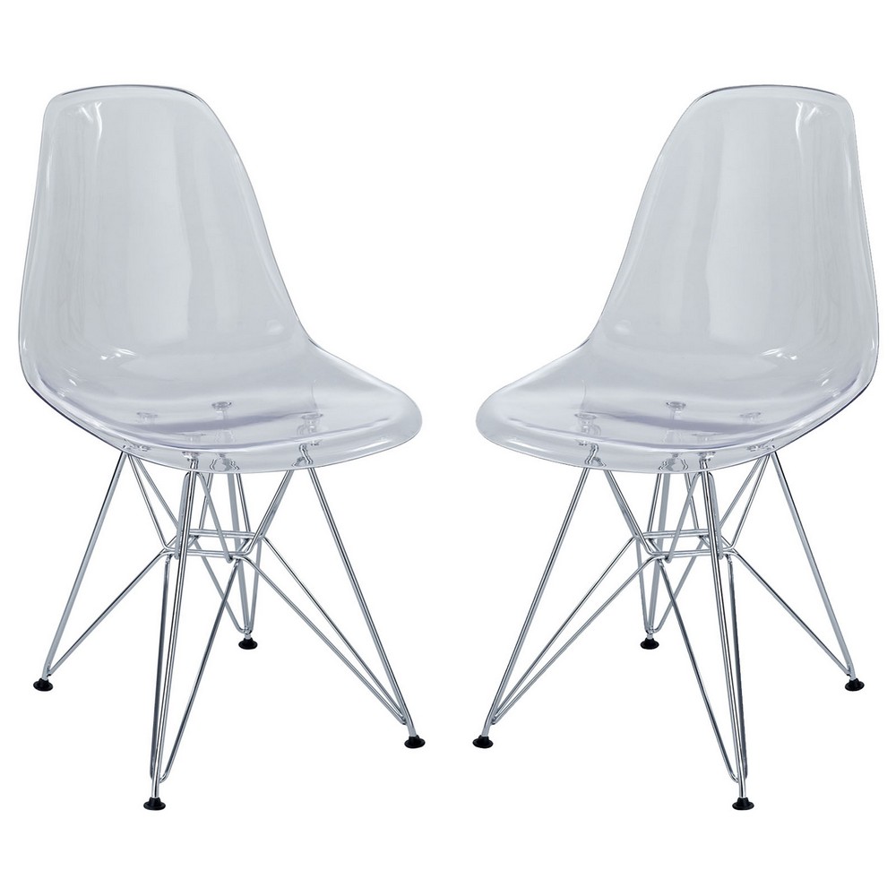 Modway Paris Mid-Century Modern Side Chairs with Steel Metal Base in Clear - Set of 2