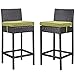 Modway Lift Wicker Rattan Outdoor Patio Two Bar Stools with Cushions in Espresso Peridot