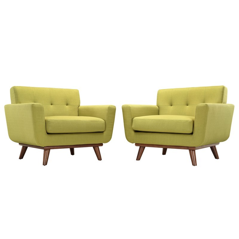 Modway EEI-1284-WHE Engage Mid-Century Modern Upholstered Leather Two Armchair Set Wheatgrass