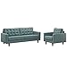 Modway EEI-1313-LAG Empress Mid-Century Modern Upholstered Fabric Sofa and Armchair Set Laguna