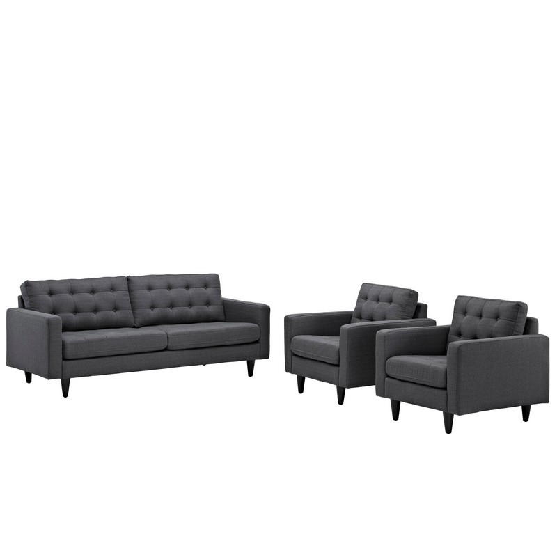 Modway EEI-1314-DOR Empress Mid-Century Modern Upholstered Fabric Sofa and Two Armchair Set Gray