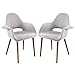Adegis Collection EEI-1329-LGR Set of 2 Dining Armchairs with Medium Brown Tapered Wooden Legs, Chrome Plated Aluminum Leg Connectors and Twill Fabric Upholstery in Light Grey Color