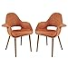 Modway Aegis Mid-Century Modern Upholstered Fabric Organic Two Dining Armchair Set With Wood Legs In Orange