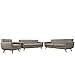 Modway EEI-1349-GRA Engage Mid-Century Modern Upholstered Fabric Sofa, Loveseat and Armchair, Set of 3 Granite