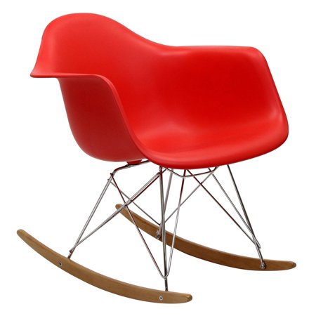 Modway Rocker Mid-Century Modern Molded Plastic Living Room Lounge Chair Rocker in Red