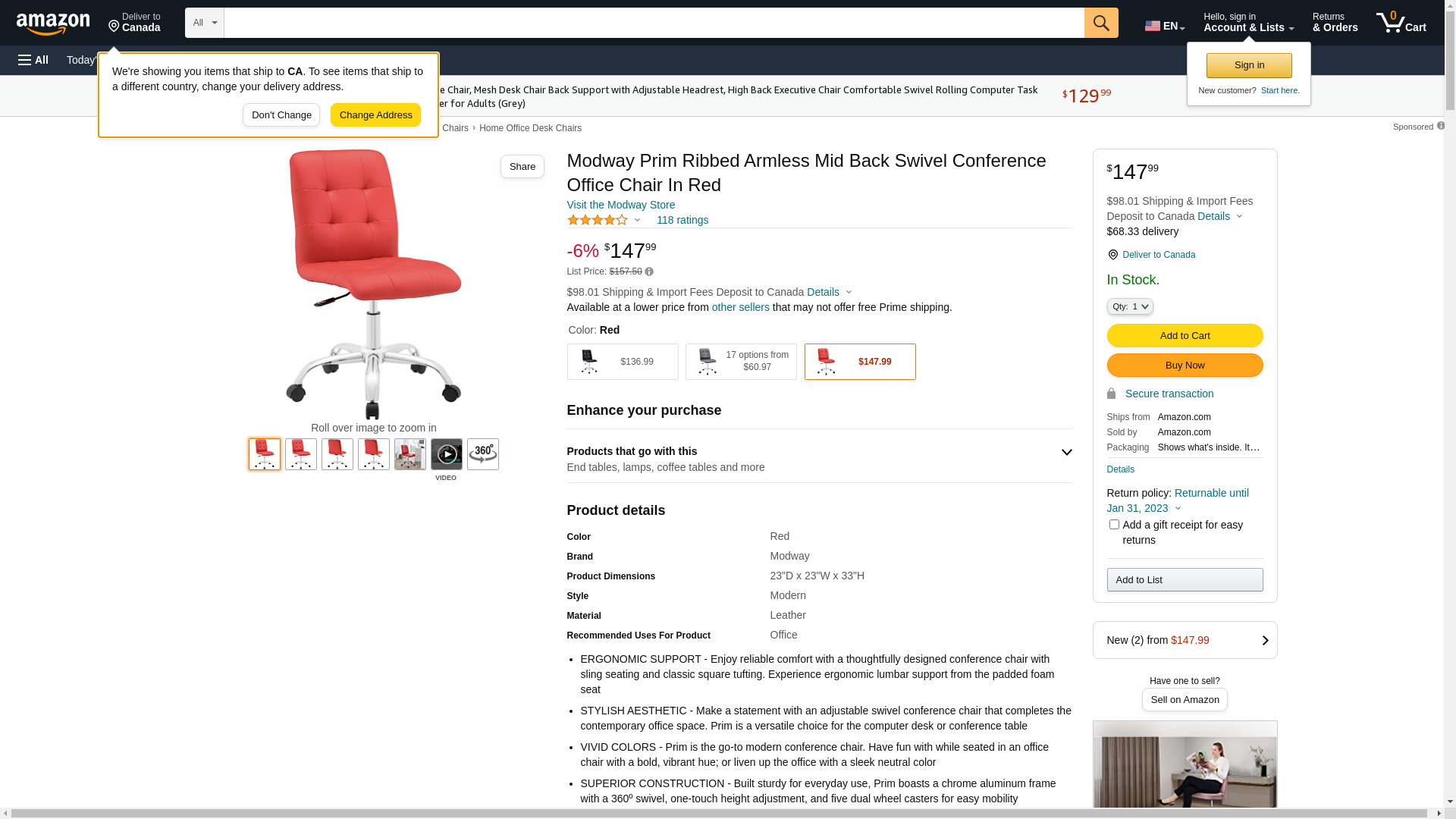| MODWAY-FURNITURE-EEI1533RED | 1 | -2 | 1 | 1 @ $154.00 | |