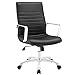 Modway Finesse Ribbed Faux Leather Mid Back Ergonomic Swivel Computer Desk, Black