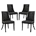 Modway Noblesse Modern Tufted Vegan Leather Upholstered Four Kitchen and Dining Room Chairs in Black