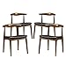 Modway Tracy Mid-Century Modern Wood and Faux Leather Upholstered Four Dining Chairs in Black
