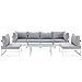 Modway Fortuna Aluminum 7-Piece Outdoor Patio Sectional Sofa Furniture Set with Cushions in White Gray