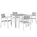 Modway Maine Aluminum 5-Piece Outdoor Patio Dining Set with 39" Dining Table and Four Dining Armchairs in White Light Gray