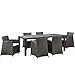 Modway Junction Wicker Rattan 7-Piece Outdoor Patio Dining Set with 80" Dining Table and Six Dining Armchairs with Cushions in Brown White