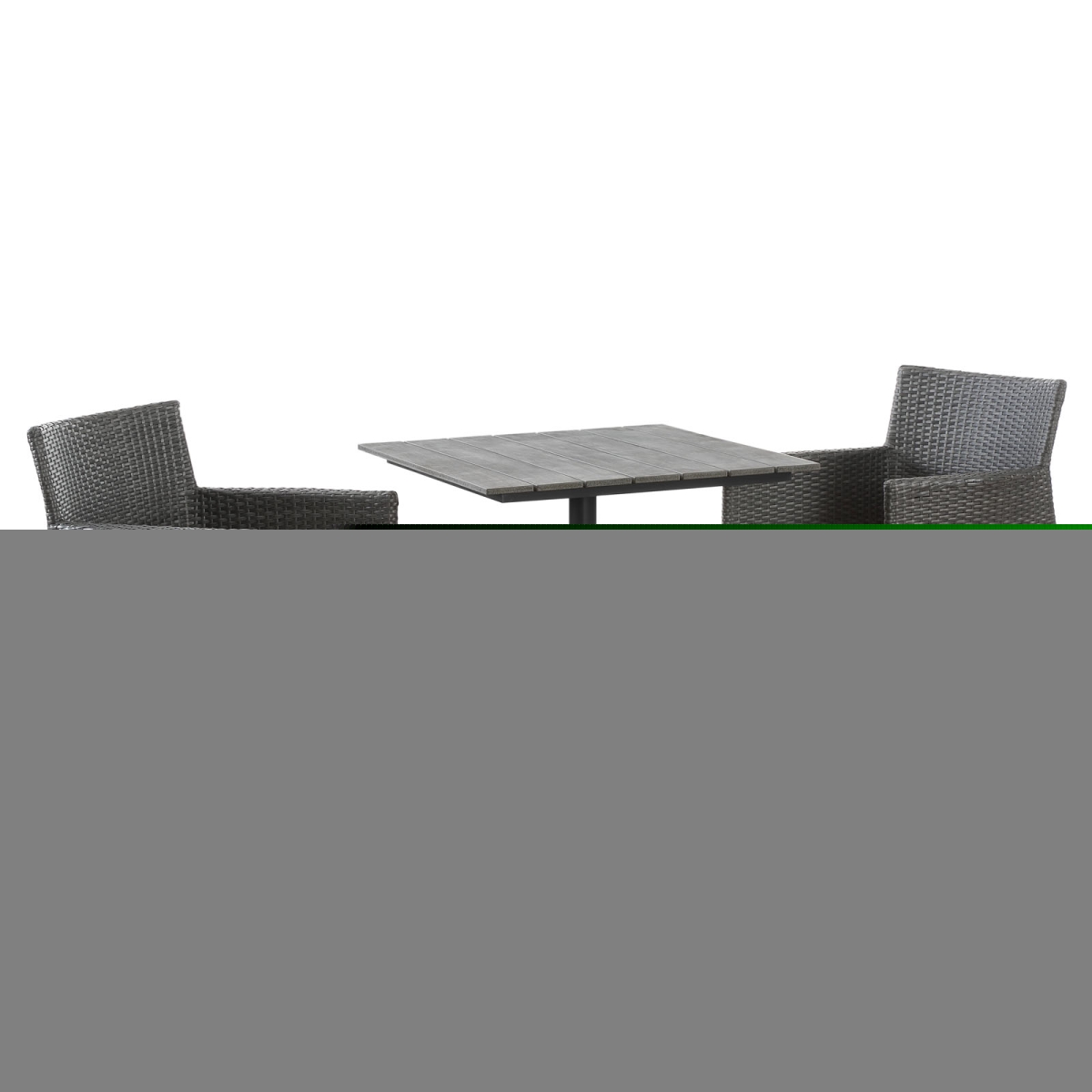 - OUTDOOR DINING SET MEASUREMENTS - The Junction Collection is great for any summer soirée. Table Dimensions: 27.5"L x 27.5"W x 28.5"H; Armchair Dimensions: 23"L x 22.5"W x 32"H