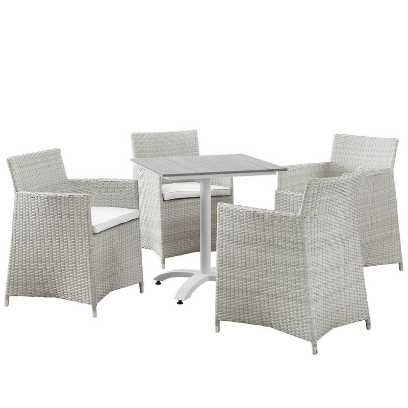 Modway Junction Wicker Rattan Outdoor Patio 5-Piece Dining Set, Gray White