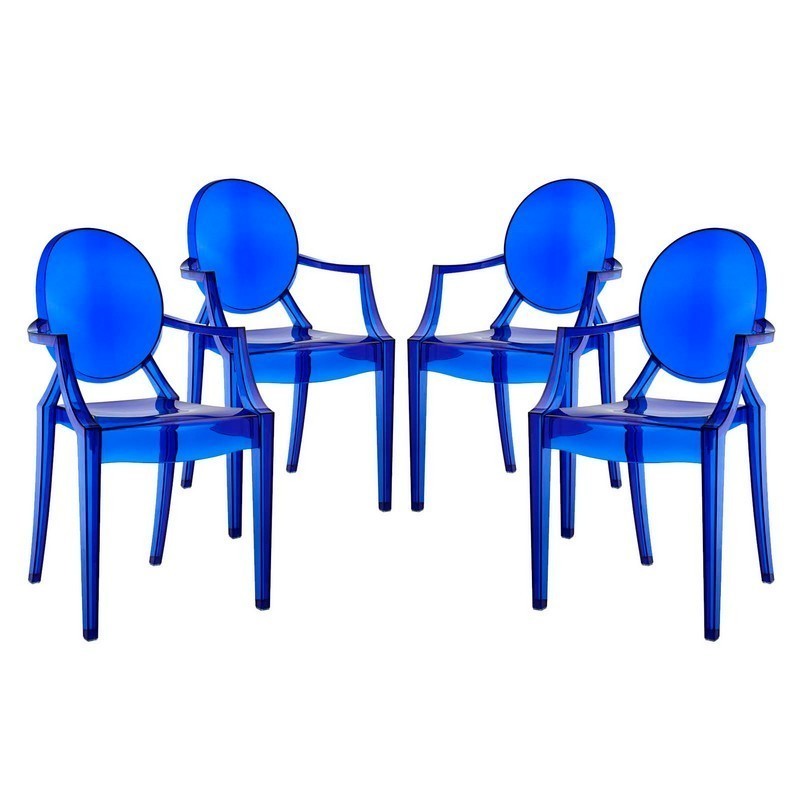 Modway Casper Modern Acrylic Stacking, Four Dining Armchairs, Blue